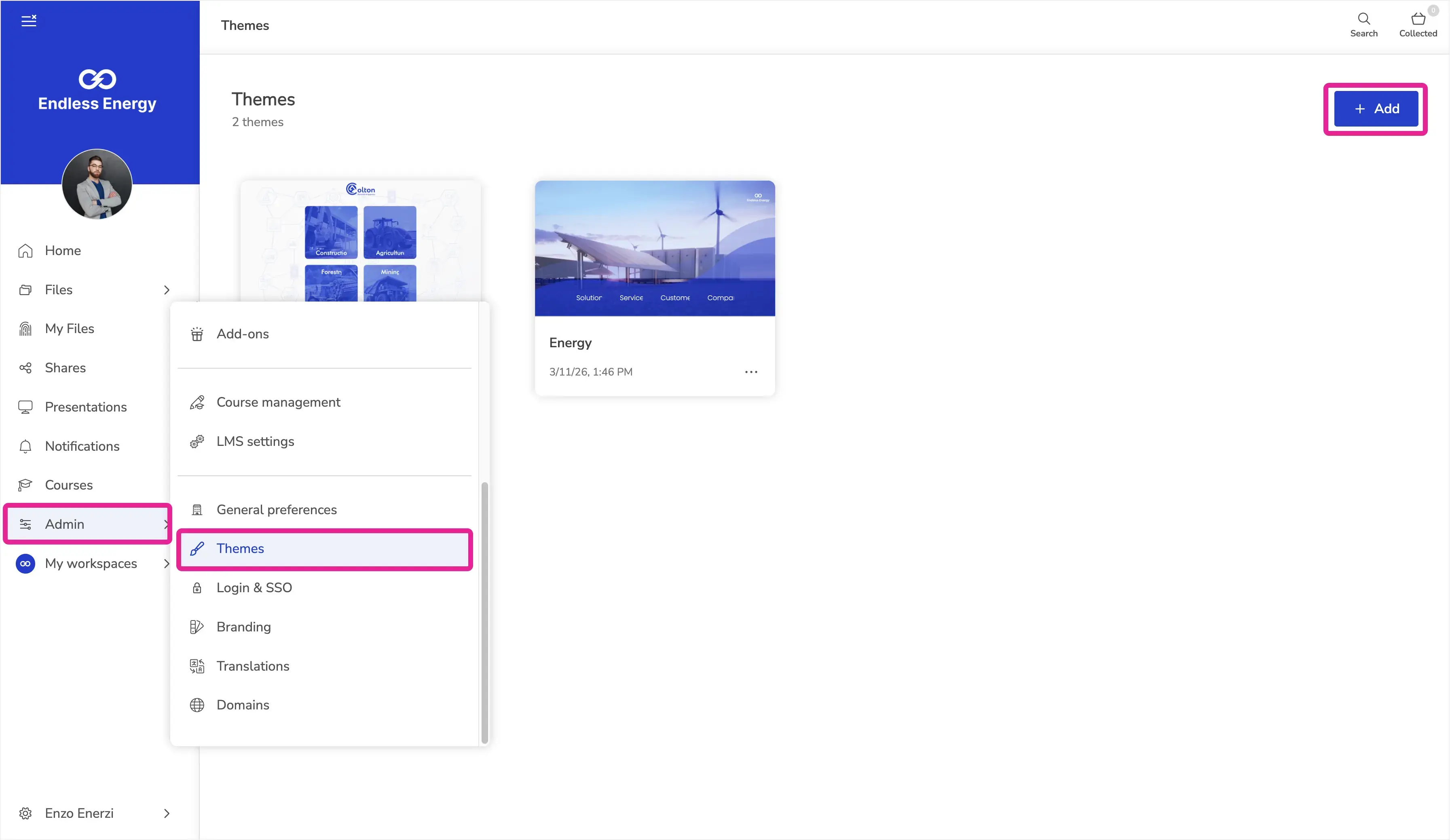 Click Admin in the side menu > Themes