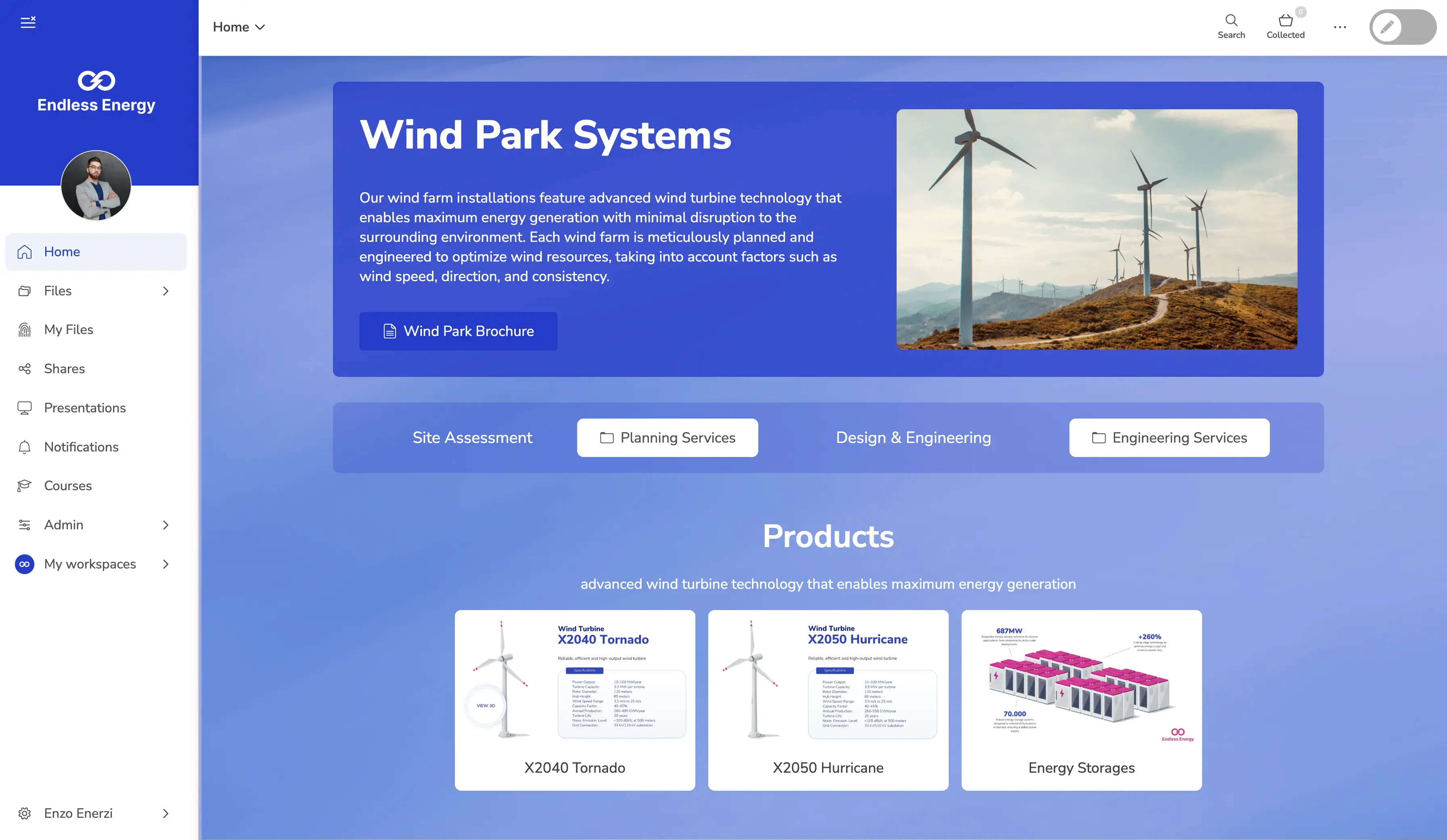 Hero sections that introduce a folder or guide users toward key content