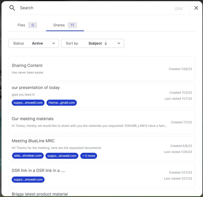 - Search, Filter or sort your shares directly from the 'Shares' area
