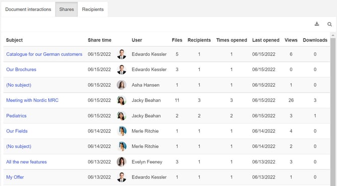 - Share interactions: This will show you the recipients that have opened the share, when, and for how long they watched it.